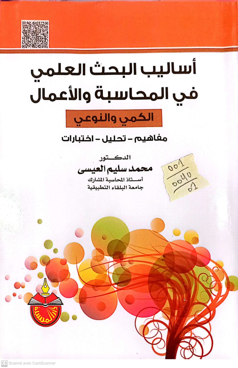 Be the first to review “اساليب البحث العلمي في المحاسبة والاعمال الكمي والنوعي مفاهيم تحليل اختبارات/ العيسى، محمد سليم”